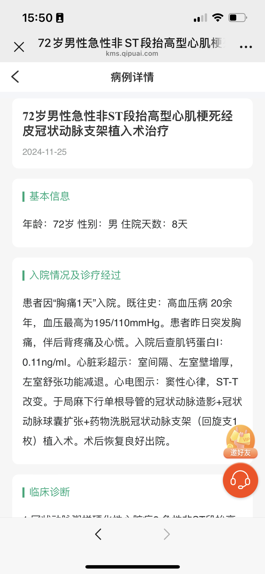 - 相关病组病例,点击出现病例详情,病例页面展示诊断情况、编码及入组质控思路