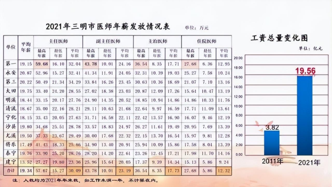 △ 公立医院工资总额由2011年的3.82亿元增加到2021年的19.56亿元,增加了4.12倍